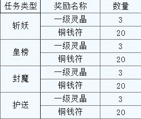 活动规则:活动期间,玩家完成斩妖、皇榜、封魔、护送任务能获得额外的奖励哦