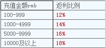 2、活动期间,单笔充值在10,000元宝-49,999元宝之间,即可获得返利14%;