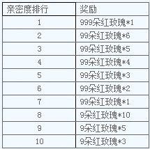 【活动内容】活动时间内,亲密度排行榜前十的情侣中女性玩家将获得豪华玫瑰奖励,奖励将于活动结束后三个工作日以邮件形式发送。