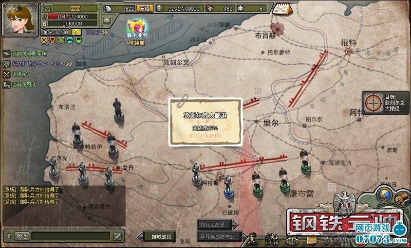 《钢铁元帅》全球公测版在融合军官养成、阵法运用、兵种搭配等军事要素的同时,还包含了竞技场、油田战、金矿战等创新玩法。让你重返战火纷飞的二战年代,与数十万策略游戏爱好者一争高下,体验与三国类冷兵器战斗皆然不同的现代化战争。游戏倾情演绎昔日经典,让历史在今天立体再现,全力打造创意玩法,让二战散发别样风情!