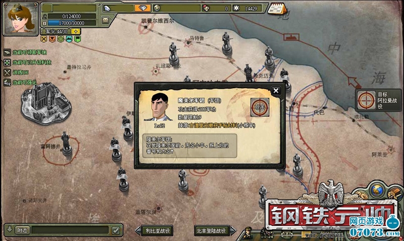 (图3:《钢铁元帅》游戏截图——隆美尔军团)