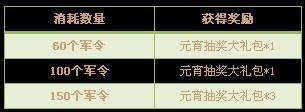 【活动内容】:凡在活动期间消耗军令达到一定数量即可获得相应奖励。