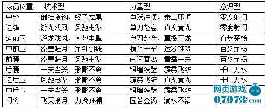 1、球员的特技:每位球员只能学习对应该球员位置的5项特技。