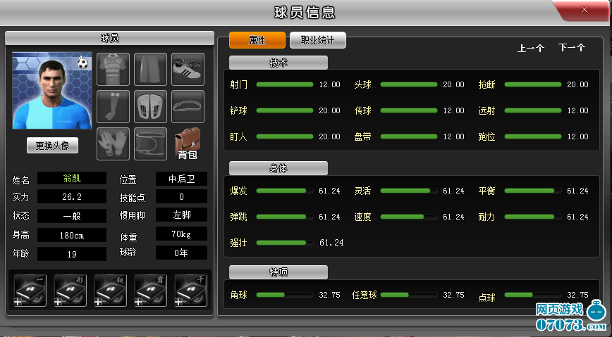 非门将技术属性:传球,盯人,盘带,抢断,铲球,射门,跑位,头球,远射