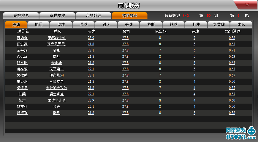 4、技术统计:玩家可以在这里看到多项技术统计