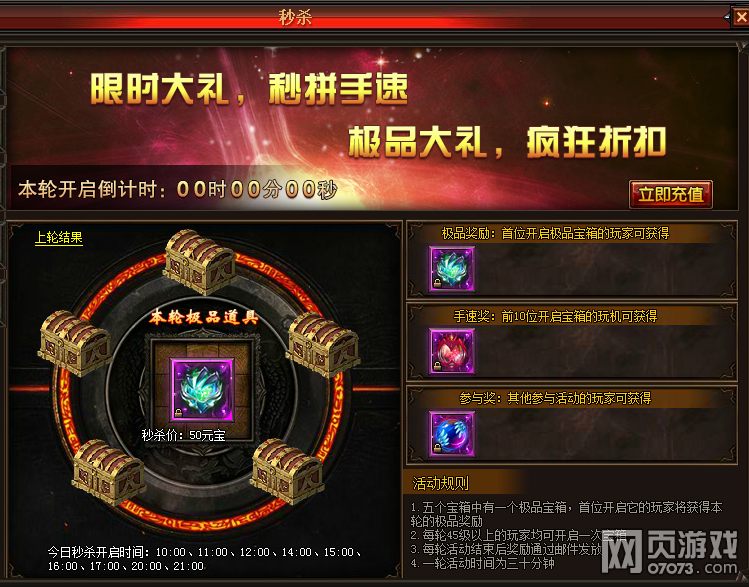 五个宝箱中有一个极品宝箱,首位开启它的玩家将获得本轮的极品奖励