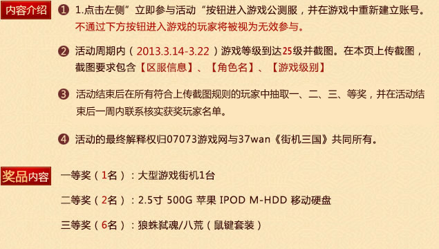 今日带你穿越时空,特携手07073举办“玩好游戏赢蛇年豪礼”活动,80后机友们赶紧来亮武器吧,来37wan街机三国舞动起你的指头,把儿时梦寐以求的