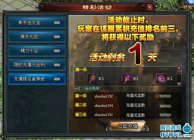 充值排名送神装,顶级神兵等你来争!机会仅此一次,称霸全服就在此刻!