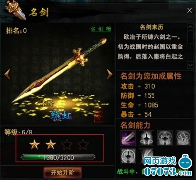 横扫天下名剑升阶玩法有很多玩家还不太明白怎么升阶,其实这个玩法小编一开始也不知道,后来才摸索发现,要想升阶,必须把下面四个星星都点亮,并且下面的绿色条条是满的,那么如何才能把四个星星都点亮呢,可以通关野外打怪来使它点亮,也可以用剑气石来升级,剑气石一般都是邮礼包来领取的,这块有个地址希望能让玩家领到更多的好东西。