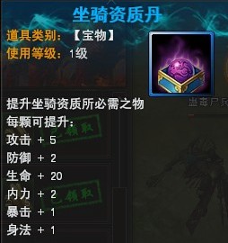 赠送: 通过活动充值,可以获得资质丹,另外就是坐骑是青龙的玩家可以免费领取8颗(条件略高)。