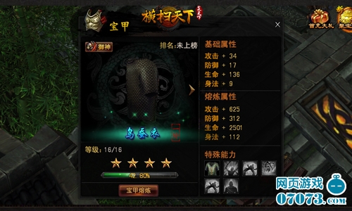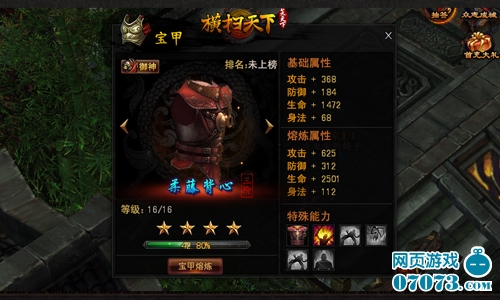暗黑江湖,人心叵测,在这里,时时刻刻密谋着惊天阴谋,祸及武林。身处乱世的你,若无金刚宝甲护身,又将如何应对危机?2013年超人气暗黑武侠网游《横扫天下》,宝甲系统可提升各项防御属性并抵抗名剑造成的成吨伤害!此刻,金鳞加身,便有御神之威!