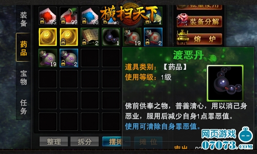 江湖杀人不问原因,但是不管是以何目的在杀人,在你的身上就会留下痕迹。苦海无涯,回头是岸,想回头,现在还不晚。想清除这种痕迹,就来暗黑武侠双端网游横扫天下中,服用“渡恶丹”。