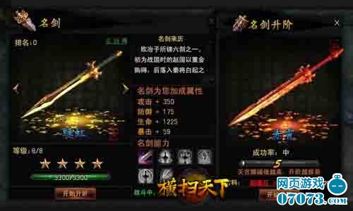 八大名剑提升攻击、防御、生命、暴击四大属性,并有特有的名剑技能,包括,无视防御、降低移速、持续灼烧、多段伤害等。成功转魄后,“一剑封喉”有一定几率造成5倍(八阶10倍)名剑伤害。