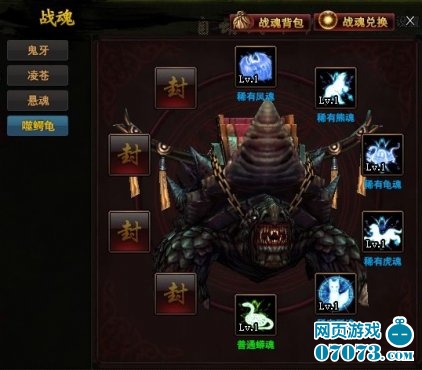 只有四阶到七阶的坐骑可以装备战魂哦!也就是鬼牙、凌苍、悬魂、噬鳄龟。战魂的格子由坐骑的等级决定,目前开放了8个格子,坐骑等级达到90可以全部打开。