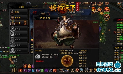 在合作战斗中,侠客无疑是良师典范,于闲暇而言,生活中的他又是不可多得的益友。大侠在江湖系统界面找到“侠客传功”,通过消耗侠客秘传来进行传功,每位侠客每日可传功3次,该侠客最多传功共45次,传功次数越多消耗的侠客秘传越多,传功后可显著增加玩家的人物属性。