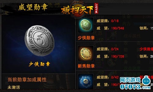 暗黑武侠双端网游横扫天下近日新增威望勋章系统,大侠可在人物属性界面查看到。威望勋章,佩戴有型,属性加成,荣耀武林!