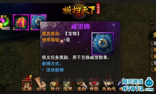 【侠义任务奖励多 威望牌必不可少】