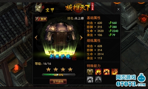 2.宝甲:前说名剑犀利,宝甲应运而生!宝甲提供被动技能,以抵抗名剑伤害。这里就要根据对手情况,适当分配宝甲资源。知己知彼,才能百战百胜!