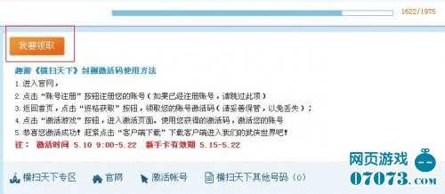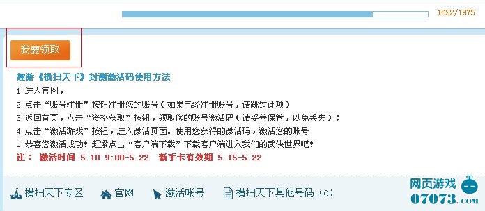 3.返回首页,点击“资格获取”按钮,领取您的账号激活码(请妥善保管,以免丢失);