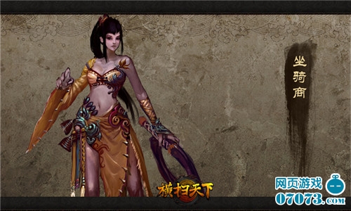 初入襄阳城,你将邂逅美丽性感的坐骑商,她会慷慨赠与你一匹上好坐骑:刀男跨犀,剑男驾马,镰女骑象,枪女御豹。与马为伍的女子都不是俗物,她们野性十足,难受拘束,策马扬奔之时气概不输男人。御马养成的灵性又令她们聪敏过人,此等女神绝非常人可驾驭。
