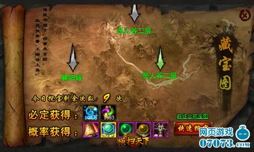 《横扫天下》从不吝啬对玩家的福利惠施,零消耗即可领取珍贵道具!首先,角色每提升5级系统都将送出超值礼包,内含多种珍贵道具,神龙果就是其中之一;其次,VIP玩家每日领取的礼包内都含有2个神龙果,积少成多,何愁坐骑升阶不成;此外,挖宝也不失为一个行之有效的方法,不过应先将普通藏宝图合称为紫装地图,以减少无谓的时间消耗,同时还可大大提升中奖几率。
