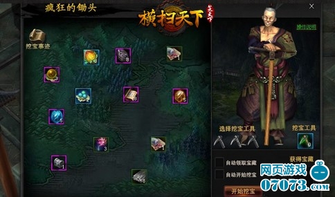 玩家可通过各类运营活动,分别获得金银铜三种锄头,点击道具锄头进入挖宝界面,挖得宝贝的质量则与锄头等级呈正相关。这其中就包括江湖上人人渴望的等级飞跃包(内含5-9枚500万经验丹不等),装备修炼极致符,古学志道具,紫色藏宝图等等。