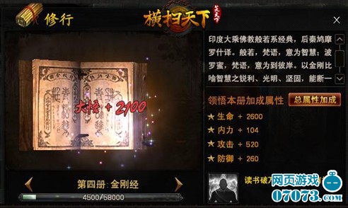《横扫天下》的修行系统,通过领悟、顿悟、大悟等过程,内化十二部精深典籍,提升战力指日可待,更有几率触发“灵机一现”经验翻倍技能。正所谓文武修行两不误,开卷有益得晋升!