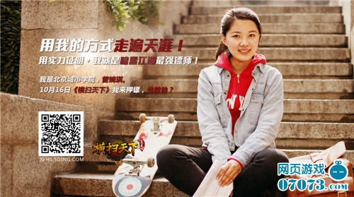 暗黑江湖的独特魅力,我们在北京城市学院的曾婉琪身上就可以清楚的了解到。她特立独行、潇洒帅气,不同于一般女孩子的纤细温柔,曾婉琪天生就有着一股大侠的风范。《横扫天下》开拓的“武侠疆土”,无论在四大职业还是各种玩法上,都致力于刻画真实人性,只为还玩家一个真实的江湖。