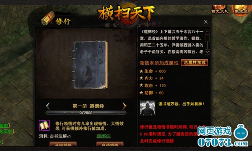 《横扫天下》的修行系统,通过领悟、顿悟、大悟等过程,内化十二部精深典籍,提升战力指日可待,更有几率触发“灵机一现”经验翻倍技能。读书破万卷,出手如有神!