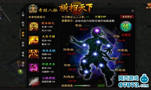 经脉,游戏的核心要素之一,与人物属性加成、输出伤害均可产生蝴蝶效应,重要程度可见一斑。经脉依靠不同脉络方式,激发不同的套装效果,四大经脉能力分别是生命系的固本培元、攻击系的无坚不摧、防御系的炼体成钢、闪避系的矫健身姿,打通八脉,融会贯通,更有绝学“六脉神剑”将获最大输出伤害。相应的经脉等级越高,效果越明显。