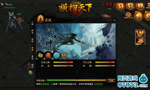 内炼一口气,想要成为江湖中的大侠,光靠一些浮夸的外表是不足以站稳脚的。暗黑武侠双端网游《横扫天下》中,角色的核心战斗力,是要从内而外的修炼。如何让人物角色更快的成长,使其的战斗力稳步提升,就在奠定基础的人物系统上。