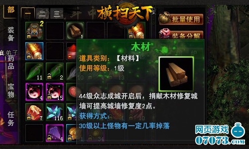 玩家通过活动界面捐献劳力、木材和石料增加城墙的修复值,木材和石料在30以上的怪物和怪物攻城活动中都有机会获得。