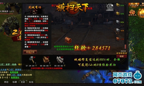 每种材料每天前20次捐献都会获得丰厚的经验奖励,等级越高经验奖励也就越高。当修复读达到指定的百分比时,玩家还可开启宝箱,海量商城道具归你所有。当城墙修复完毕后,全服将获得1小时的5倍经验,