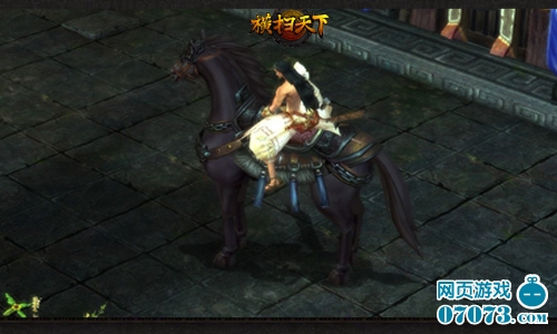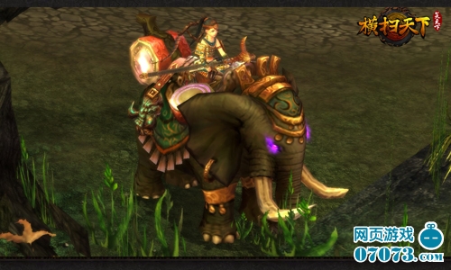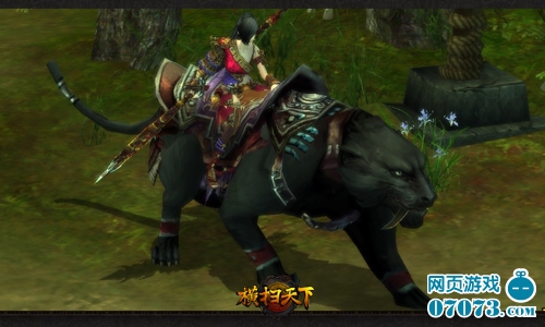 横扫天下角色起始坐骑依据职业进行划分:刀男跨银犀、镰女乘巨象、枪女驯玄豹、剑男驭骏马。每种坐骑分为三种形态,每次升级不但可拥有更绚丽夺目的外形,还可带来无可比拟的属性加成。
