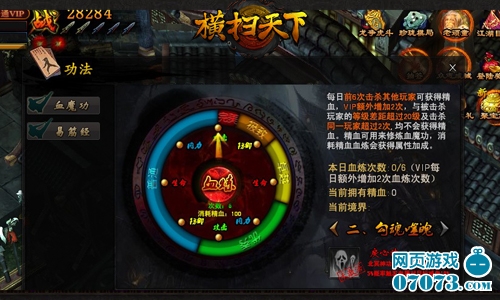修炼血魔功者,凭特殊法术,以凶兵取濒死之人体中精血元气,然后凝练成为“斩魂精魄丹”。“血魔功”是近期更新的功法系统,通过吸取他人精血,提升自身属性,从而突破魔攻境界。