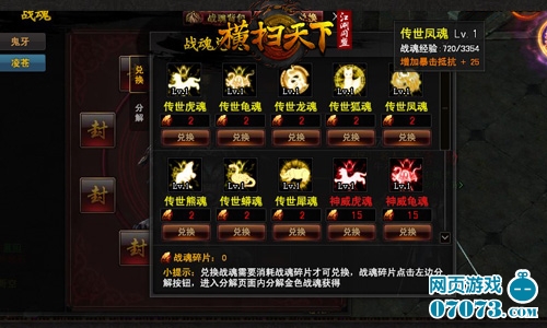 “坐骑战魂”,通过对坐骑镶嵌战魂,提高坐骑对于人物的属性加成。坐骑战魂分为五大块:战魂猎取、战魂背包、战魂合成、装备战魂和战魂分解兑换。当玩家坐骑达到四阶后,即可从坐骑系统中启动战魂,开始装备坐骑战魂。坐骑装备战魂,主人如虎添翼。