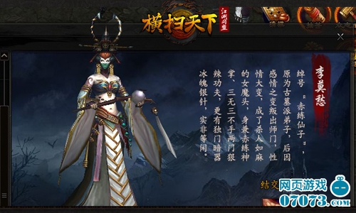 新资料片“江湖”系统,通过结交江湖名望侠客,与其并肩作战,为战场上的你增添一个坚固的保护罩,不在担心背后的空档。江湖系统中,共有10位江湖上鼎鼎大名的人物。玩家通过一定条件,分别与他们结交,就可获得大量的属性加成和侠客独一无二的技能。