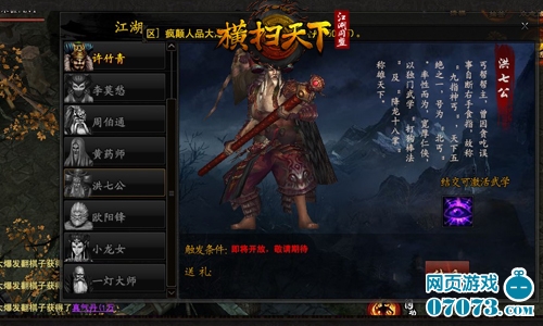 后续开放的江湖侠客,有周伯通、黄药师、洪七公、欧阳锋、小龙女、一灯大师。