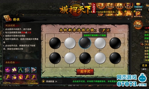 一着不慎,全盘皆输。在围棋的世界里,每走一步都要经过百转千回的思虑,才能下手。棋类游戏有着一种特别的吸引力,需要运用你的大小脑齐运转,才能完成好这项活动。在暗黑武侠双端网游《横扫天下》中,全新“猜棋玩法”智慧上线,想测试下你的智商上限么?那就千万不能错过这项好玩又动脑的新活动了。