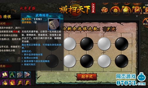 当猜棋获得的奖品不如意或猜棋次数不足时,财力雄厚的大侠可以点击起手式,使用元宝进行重置,起手式重置棋局后,获得奖励也会被重置。