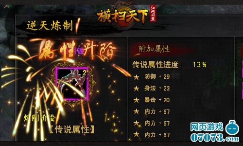 新土豪标准二,100级装备逆天炼制。装备逆天炼制,将达到极致属性的装备炼制到完美、无双、传说、真武、神威五个逆天阶段,完成对装备的霸气炼制。极致属性装备不再是土豪标准,只有完成对装备的逆天炼制,才是2013年末新土豪的王道!