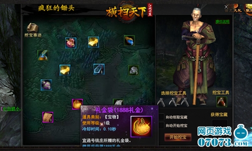 暗黑江湖,幸运福星的汇集之地。使用锄头,挖出琳琅满目的武林瑰宝,铜、银、金锄头可挖出极品宝物的几率依次递增。藏宝图暗藏玄机,武林正邪两派,皆为之疲于奔波。若机缘巧合,还有可能惊醒正在休憩的世界Boss哦!疯狂锄头、藏宝图,只要挖出极品宝物就能“上头条”。