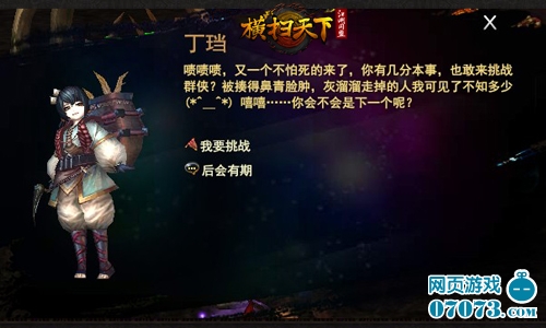 等级达到60级的玩家,就可以参加群侠挑战了。可通过右上角图标或活动中群侠挑战分页进入副本。随后,与一脸不屑、满口嘲讽的NPC丁珰对话,选定群侠,即可开始战斗。