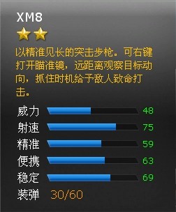 XM8:以精准见长的突击步枪。可右键打开瞄准镜,远距离观察目标动向,抓住时机给予敌人致命打击。