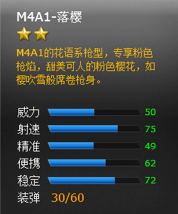 火线精英M4A1-落樱枪械属性介绍。