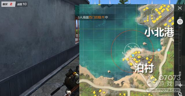 最后一个是在泊村海岸编的决赛圈,一共就几间房子,考得非常近,如果有敌人马上就能察觉到,稍微远一点的就是海岸,而海岸边一般都没有掩体,如果躲在水里那就成了别的的“鱼”,这个决赛圈实在是太刺激了!