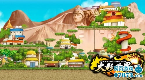 这里就是繁荣富饶的木叶村。雕像山记载着村子的一朝一夕,一草一木都传承者火之意志。
