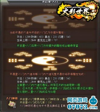 在《火影世界》中,开启每一门内对应的穴道都会获得相应的人物属性提升。八门威力巨大,因此每个穴道开通成功时,人物附近的玩家都会获得经验加成,同时附近的怪物都会受到爆穴造成的伤害被秒。是不是很爽呢?