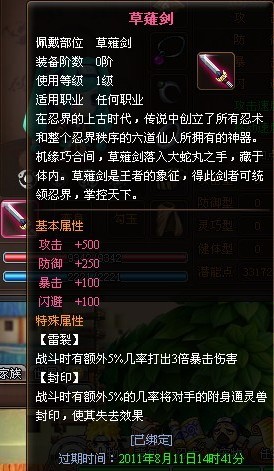 在草薙剑争夺战活动中,玩家可以自由PK,任意发挥本领。既不会有和平保护限制,也不会增加罪恶值,更不会受到罪恶惩罚!绝对自由的领地,百分百公平的切磋平台!热衷于忍术究极研究的你,和胸怀远大梦想的你,现在就来加入这个激情四溢的战场吧!