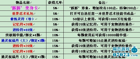 4.以上活动赠送的道具中百变变身卡、精铁石、纲手礼包、通灵祝福丹(特)、通灵祝福丹(稀),均为不绑定道具!